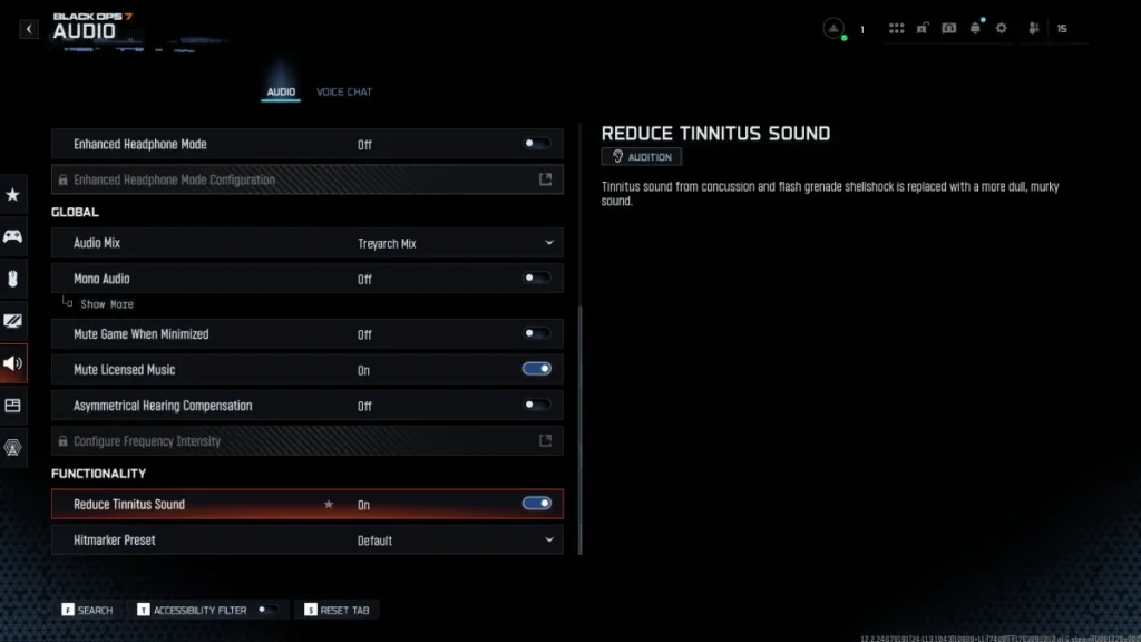 • เปิดใช้งานตัวเลือก Reduce Tinnitus Sound เพื่อลดเสียงน่ารำคาญจากระเบิดแสง (stun) หรือระเบิดแฟลช (flashbang) โดยไม่สูญเสียสัญญาณเสียงที่จำเป็น