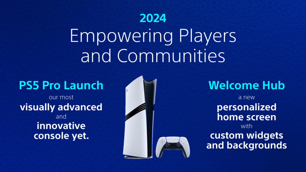 - นี่เป็นปีที่เราเปิดตัว PS5 Pro – คอนโซลที่น่าประทับใจทางสายตาและเป็นนวัตกรรมมากที่สุดของเราจนถึงปัจจุบัน พร้อมด้วย PlayStation 30th Anniversary Collection เพื่อเฉลิมฉลอง 30 ปีที่น่าทึ่งของการเล่นและความคิดสร้างสรรค์